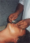 鼻孔にメディカルオイルを点鼻し、主に頭部、咽、鼻腔に過剰になったドーシャやマラをくしゃみによって排泄させます。